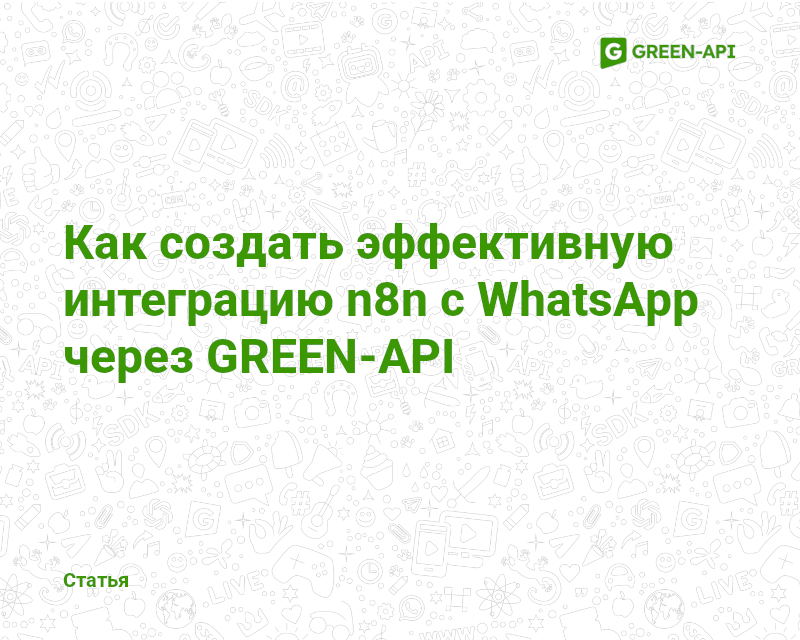 Многие компании достигают момента, когда ручные действия начинают сказываться на скорости рабочих процессах. Команды ежедневно повторяют одни и те же операции, утопая в «рутине», как например,обновляют записи, отправляют подтверждения, пересылают документы и уведомляют коллег. Эти задачи не требуют творческого подхода, но отнимают время и неизбежно приводят к ошибкам. n8n предлагает способ перенести эти действия в автоматизированную среду. Этот сервис представляет рабочие процессы в виде последовательности визуальных блоков, поэтому весь процесс остается понятным. Вы выбираете событие, которое должно запустить рабочий процесс, а затем определяете, как будет реагировать каждая подключенная система. Структура остается видимой в любое время и даже сложные действия кажутся предсказуемыми и управляемыми. Ее интеграция с WhatsApp через GREEN-API дает возможность минимизировать время на второстепенных вопросах, фокусируясь только на самых важных. Содержание n8n - практичный инструмент автом