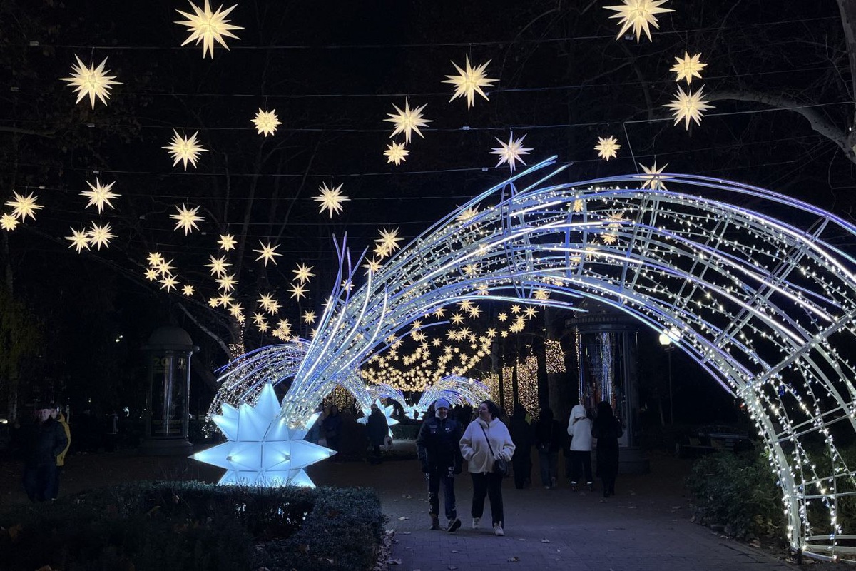 🎄 Какие города уже украсили улицы к Новому году? Улица Красная в Краснодаре уже готова к празднику! В самом центре города официально зажглись новогодние огни. Светящиеся арки и «звездное небо» уже радуют глаз прохожих и создают волшебную атмосферу. Теперь вечерние пробки из гуляющих станут не просто толпой, а настоящим праздничным шествием — ярким, уютным и наполненным новогодним настроением. ✨ *Источник фото - Кубань 24