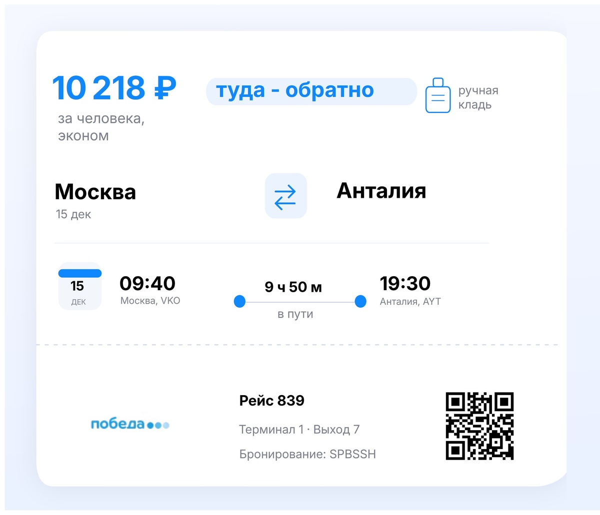 ✈️ Москва - Анталия, от 10218 рублей 15 декабря 2025 г. - Купить билет ❗️ Цена и наличие билетов актуальны на момент публикации. Также проверяйте соседние даты. 🏖 Поиск туров | ✈️ Авиабилеты