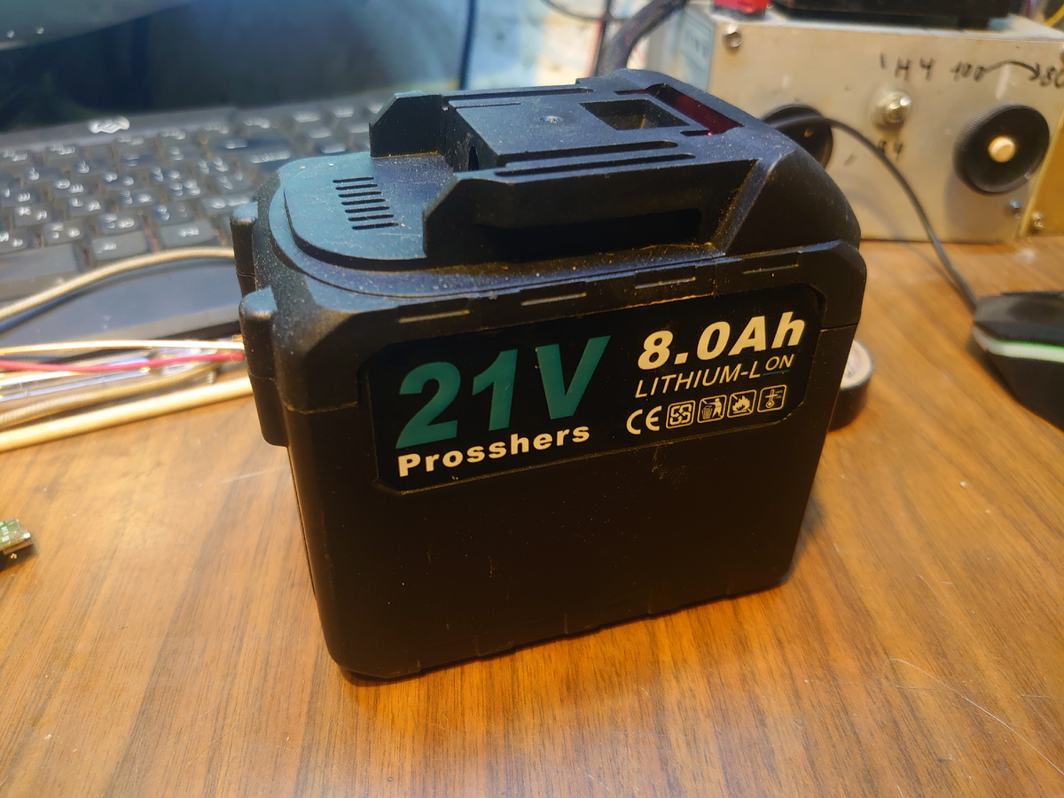 Всем доброго! Не так давно я писал историю про недоехавшие два из трёх аккумуляторов. Ну так вот — вчера провёл тестовые замеры. Проверил напряжение на клеммах аккумулятора — 19 В, то есть примерно 60 %. Дозарядил и поставил на разряд стабильным током 1А через описанную ещё давно приблуду (да-да, она ещё жива и активно используется по прямому, а иногда и не очень прямому назначению). Вместе со стартом разряда запустил секундомер. Я, конечно, звёзд с неба не хватал и точно понимал, что процесс разряда 8 (китайских) Ач аккумулятора током 1А не займёт ровно 8 часов, однако фактический результат меня крайне удивил и несколько расстроил! BMS аккумулятора отрезала нагрузку через 4 ч 50 мин, то есть через 4,83 часа! Очевидно, что при токе ровно 1 А это равно 4,83 Ач. Это вдвое меньше заявленного продавцом! Вскрыл корпус и увидел симпатичные баночки с маркировкой, как у хороших корейских аккумуляторов, с чётко и недвусмысленно прописанной ёмкостью 2000 мАч. Дербаню дальше, добываю одну из