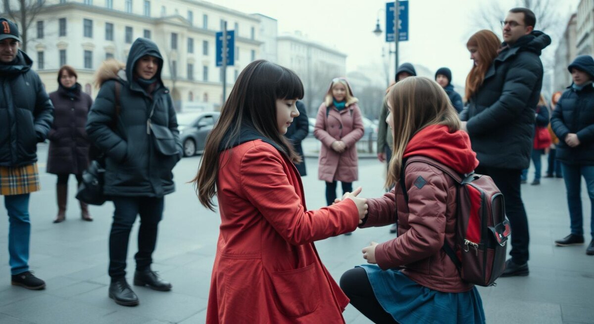 В эпицентре все развивалось быстро. Сначала — резкие реплики, попытка выяснить, кто «начал первый», потом — требование извиниться. Кто-то из подростков включил запись вертикально, камера метнулась, и в объектив попала сцена, которая позже разойдется по сотням каналов: «Встань на колени, если ты виновата». Девочка растерялась, вокруг уже слышались подначки, а давление толпы делало каждый вздох тяжелее. Она опустилась на одно колено на секунду — как попытку прекратить этот круговорот обид — и тут же вскочила, оттолкнула близко стоявшую одноклассницу и закрыла лицо руками. Дальше на видео — обрыв: кто-то прикрывает объектив, кто-то машет рукой. Именно в этот момент за кадром прозвучало то, чего большинство зрителей не услышали: «Хватит, все, стоп!»