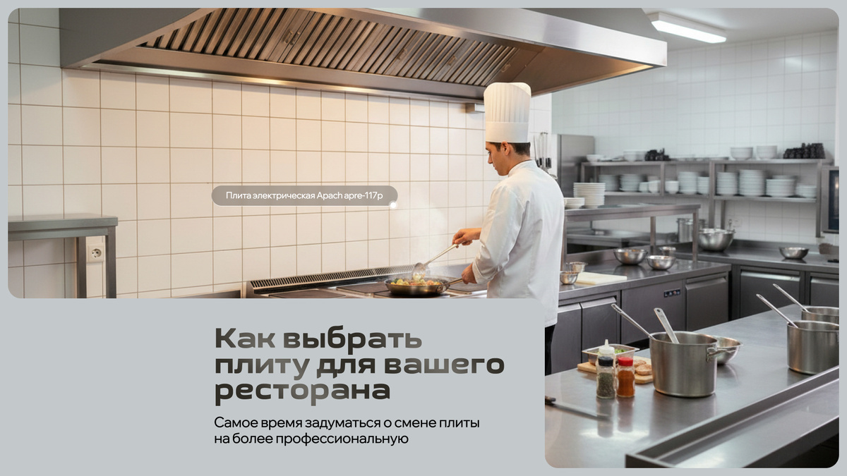 Если ваша плита не справляется с нагрузкой, вы часто сталкиваетесь с со скачками температуры или неравномерной прожаркой, то пора задуматься о её замене. Выбор плиты — это не только вопрос бюджета, но и выбор подходящей модели, которая будет идеально работать на вашем заведении. В статье расскажем об основных типах плит и поделимся брендами, на которые стоит обратить внимание при покупке. Электрические плиты Они подойдут для кафе, столовых и небольших ресторанов, где важна точность регулировки температуры и равномерный прогрев пищи. Такие плиты легко чистить и обслуживать. Они безопасны в эксплуатации и не требуют установки дополнительной вентиляции, что делает их удобными для небольших кухонь. Плюсы электрических плит: — Легкость в обслуживании и чистке. — Простой контроль температуры. — Нет необходимости в вытяжке и вентиляции. — Хороши для разнообразных блюд: от соусов до запеканок. Рекомендуемые бренды: Apach, Tatra, Abat. Эти компании предлагают высококачественные электрические п