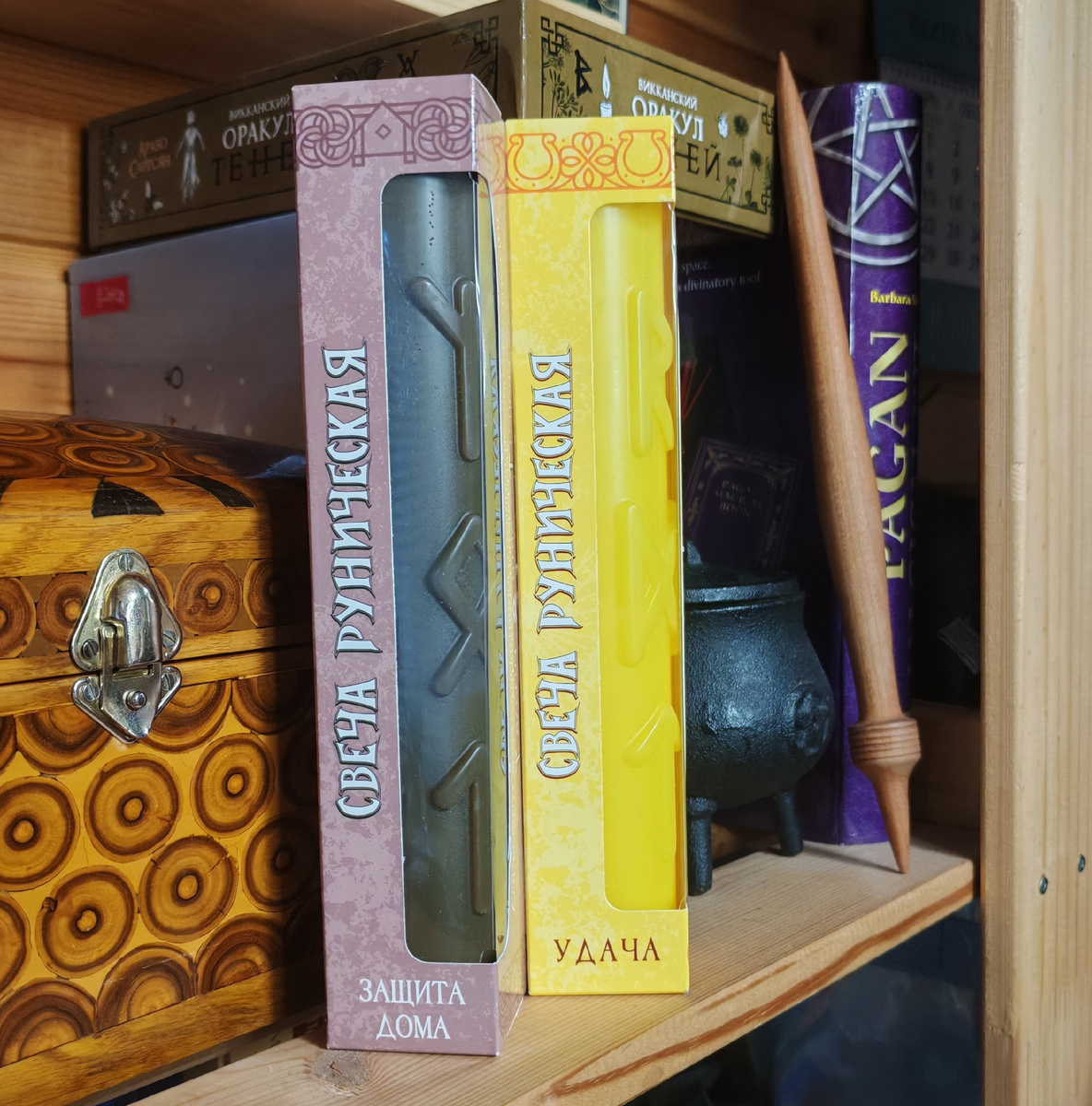 В прошлом году были карты Таро, а в этом я обнаружила вот такую красоту на полках этого проведьмовского магазина (где можно купить очень много всего, что пригодится в магических практиках). Купила только две, исходя из своих нужд и интересов. На самом деле их целых шесть разновидностей: любовь, удача, здоровье и энергия, исполнение желаний, богатство, защита дома. Свечи без дефектов, без лишних ароматизаторов, отлиты по форме. Так что это массовое производство, а не штучный товар, вырезанный или отлитый непонятно кем. Кто был этот человек? В каком настроении он или она их делал? И прочее в том же духе. Я неоднократно говорила, что с подозрением отношусь к авторским свечам и покупаю их очень редко. И только у проверенных мастеров. На это есть веские причины, и я когда-нибудь о них расскажу. На коробке есть название рун для особо мнительных - чтобы можно было перепроверить их значение в интернете. Хотя и так понятно, что формулы вполне себе рабочие. Также есть небольшая инструкция и об