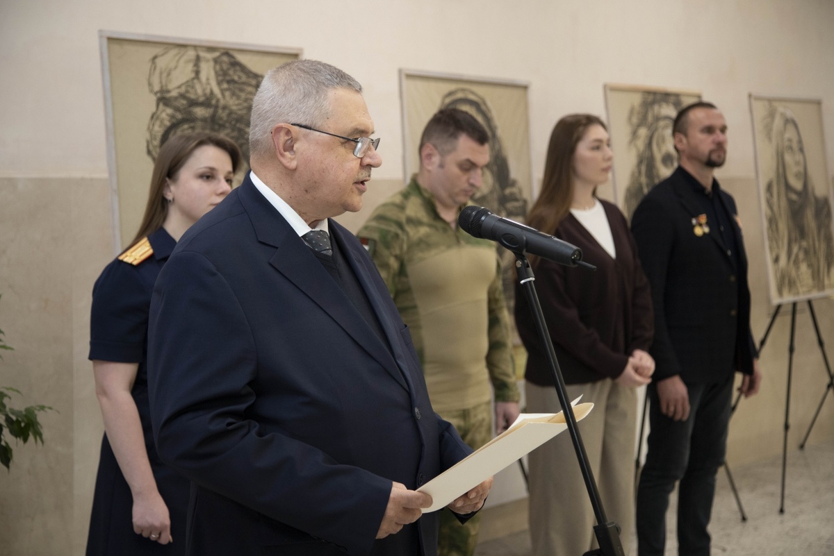В Следственном комитете Российской Федерации состоялось торжественное открытие передвижной художественной выставки «Уголь Донбасса. Лица Победы». Мероприятие организовано Культурным центром Следственного комитета России. В нем приняли участие заместитель Председателя СК России Александр Вячеславович Федоров, руководитель Культурного центра – помощник Председателя СК России Мария Дмитриевна Краснопеева, председатель Национальной Ассоциации организаций ветеранов следственных органов «Союз ветеранов следствия» Александр Евгеньевич Кукушкин, член Московского Союза художников, автор выставки Сергей Иванович Марченко, российская спортсменка, военный корреспондент Марьяна Александровна Наумова, участник специальной военной операции Денис Андреевич Кимов, сотрудники центрального аппарата Следственного комитета, обучающиеся образовательных учреждений СК России и Военного университета им. князя А. Невского Министерства обороны РФ. Мероприятие началось с церемонии возложения цветов к Доске п