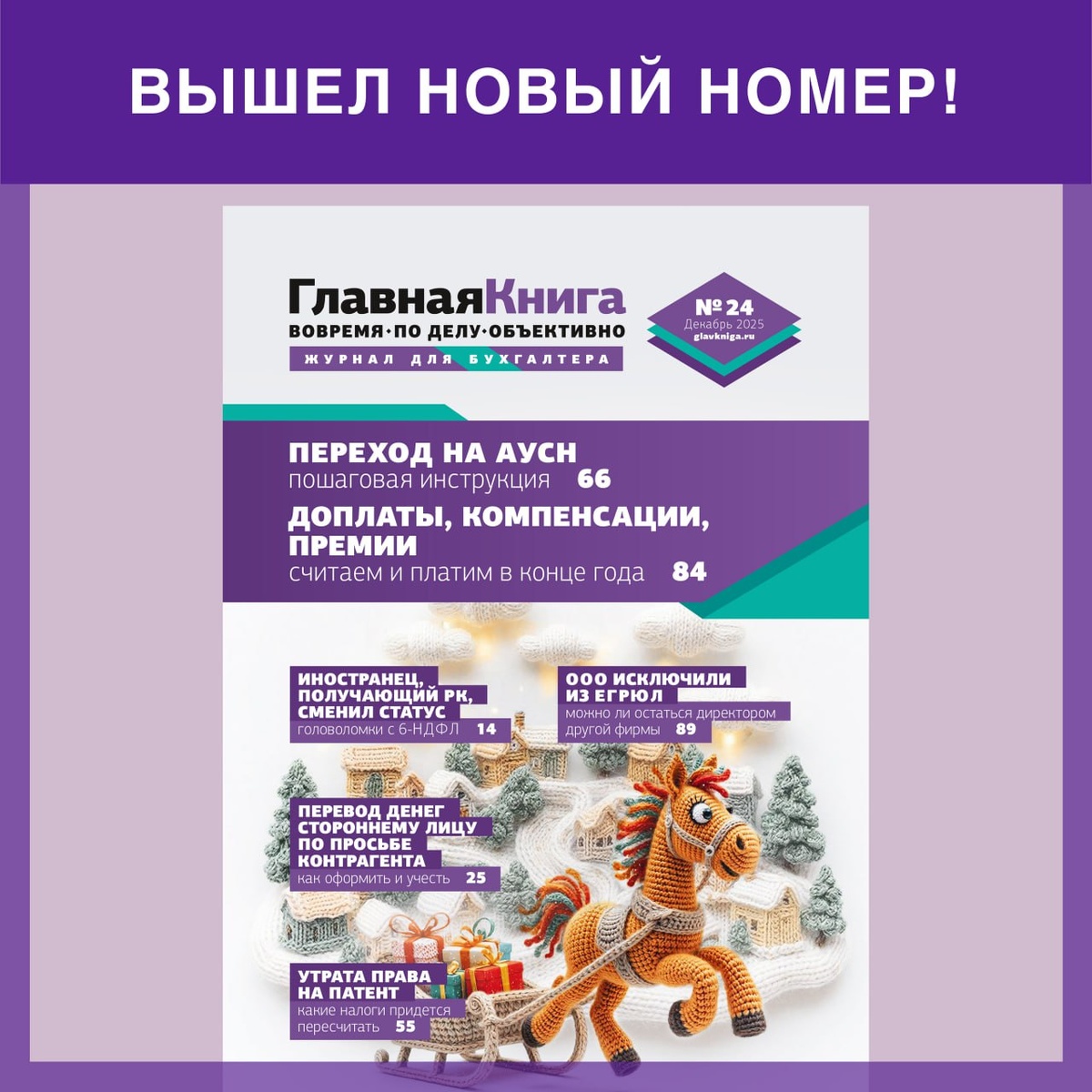 🥁🎄 Читайте выпуск журнала «Главная книга» № 24/2025 🔹 Доплаты, компенсации, премии: рассчитываем и учитываем 🔹 Перевод денег по поручению контрагента на счет стороннего лица: как оформить 🔹 Пересчитываем налоги при слете с ПСН 🔹 Пошаговая инструкция по переходу на АУСН. Часть первая 🔹 ООО исключили из ЕГРЮЛ: можно ли остаться директором другой фирмы? 🔹 Вклад в имущество ООО: бухгалтерский и налоговый учет 🔹 Больничные бывшему работнику: 3 условия и 2 особенности назначения пособия 🔹 КС РФ: не всегда можно обязать покупателя доплачивать НДС 🔹 Как отразить в учете офисную технику и программное обеспечение к ней 🔹 ИП на ОСН: вопросы конца года 🔹 Налоговая ловушка для продавцов товаров на маркетплейсе при переходе на АУСН 🔑 Чтобы прочитать статьи журнала «Главная книга», активируйте пробный доступ и в течение 2 дней знакомьтесь с публикациями журнала. Пользуйтесь всеми калькуляторами, скачивайте необходимые формы и образцы документов. #новыйвыпуск