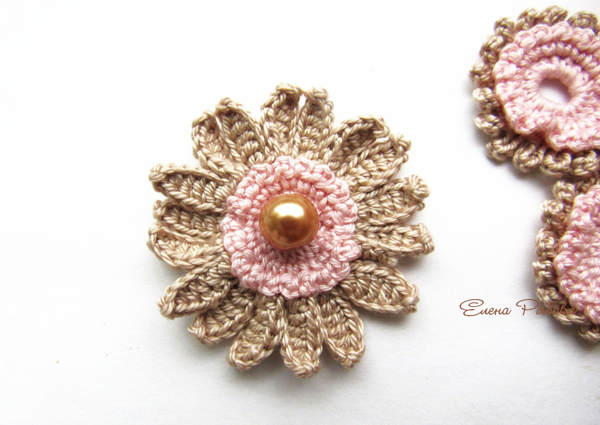 Добрый день, уважаемые гости и подписчики моего канала! Сегодня предлагаю Вам связать два варианта простого цветочка. Варианты прекрасно сочетаются между собой, их можно использовать в одном изделии (например, в арт - кружеве) или в одной композиции. Одинаковые серединки делают их подходящими друг к другу. Цветочки можно украсить бусинами. Использую акриловые или стеклянные бусины. Диаметр - 8 мм. Можно оставить без бусины или пришить вязаный элемент "пуговка". МК по его вязанию можно посмотреть здесь Цветочек, на мой взгляд, очень напоминает герберу. А что символизирует гербера? Оптимизм, радость, нежность и чистоту. Герберы сравнивают с солнечными лучами и дарят, чтобы принести свет в жизнь и поднять настроение. Где использовать такой цветок? в ирландском (арт) кружеве Солнечный мотив добавит ярких красок в ваше изделие. в аппликациях можно украсить одежду или головной убор в украшениях вязаные колье, воротнички, браслеты с герберами смотрятся по-летнему ярко и красиво в настенно