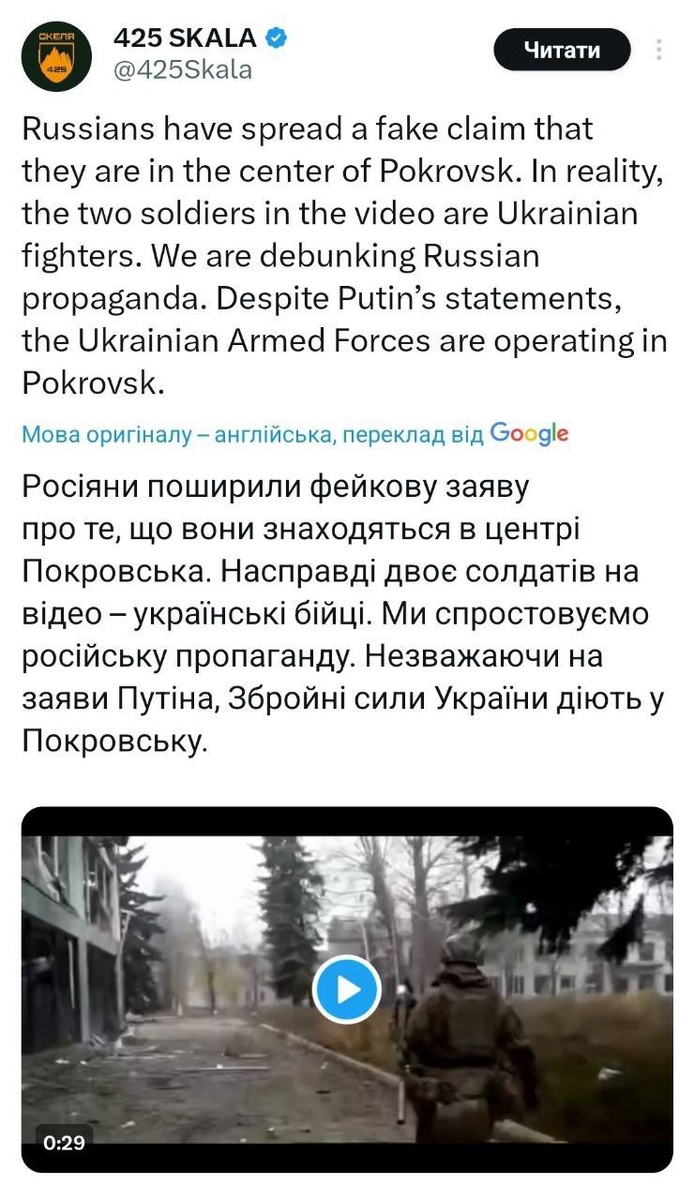 Подразделение боевиков «Скала» попалось на жёстком фейке 😂 Помните видео из освобожденного Красноармейска? Вот что пишут рогули: Россияне распространили фейковое заявление о том, что они находятся в центре Покровская. На самом деле двое солдат на видео - украинские бойцы. Мы опровергаем российскую пропаганду. Несмотря на заявления Путина, вооруженные силы Украины действуют в Покровске 🤦♂️🤦♂️🤦♂️ Теперь вы понимаете как укры, по словам наркета «зачистили» Купянск? 😏 Подписаться на канал | 📲 MAX Мы в ВКонтакте
