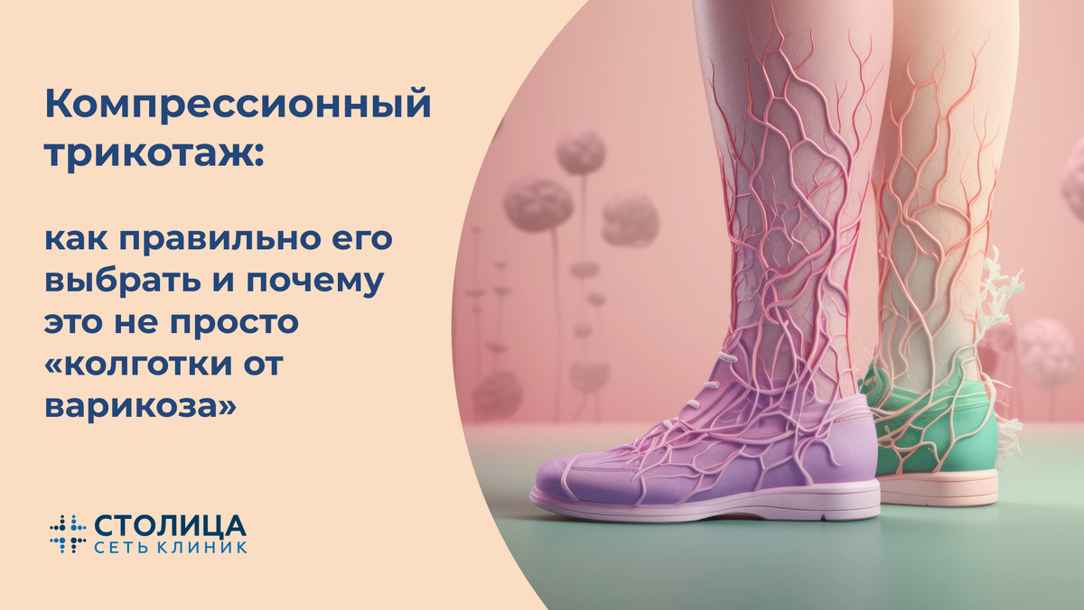 Всем привет! С вами Сеть клиник «Столица». Сегодня поговорим о вещи, которую многие по старинке представляют себе как нечто бесформенное, телесное и неэстетичное. Речь о компрессионном трикотаже. Поверьте, сегодня это — технологичный аксессуар для здоровья, который может быть стильным, удобным и решать гораздо больше задач, чем кажется. Если вы думаете, что он нужен только при запущенном варикозе, вы сильно его недооцениваете. Это не просто «колготки от варикоза», это ваш ежедневный инструмент для комфорта и профилактики. Так в чем же магия? Принцип работы, который стоит понять Основная задача лечебного трикотажа — создать грамотное, распределенное давление на ноги. Представьте, что ваши вены — это слабые мышцы, которым тяжело качать кровь снизу вверх, против силы тяжести. Компрессионное белье работает как активный помощник: Максимум давления — в области лодыжки. Постепенно ослабевает — к бедру. Эта градация давления — ключевой принцип. Она не пережимает сосуды, а наоборот, помогает «