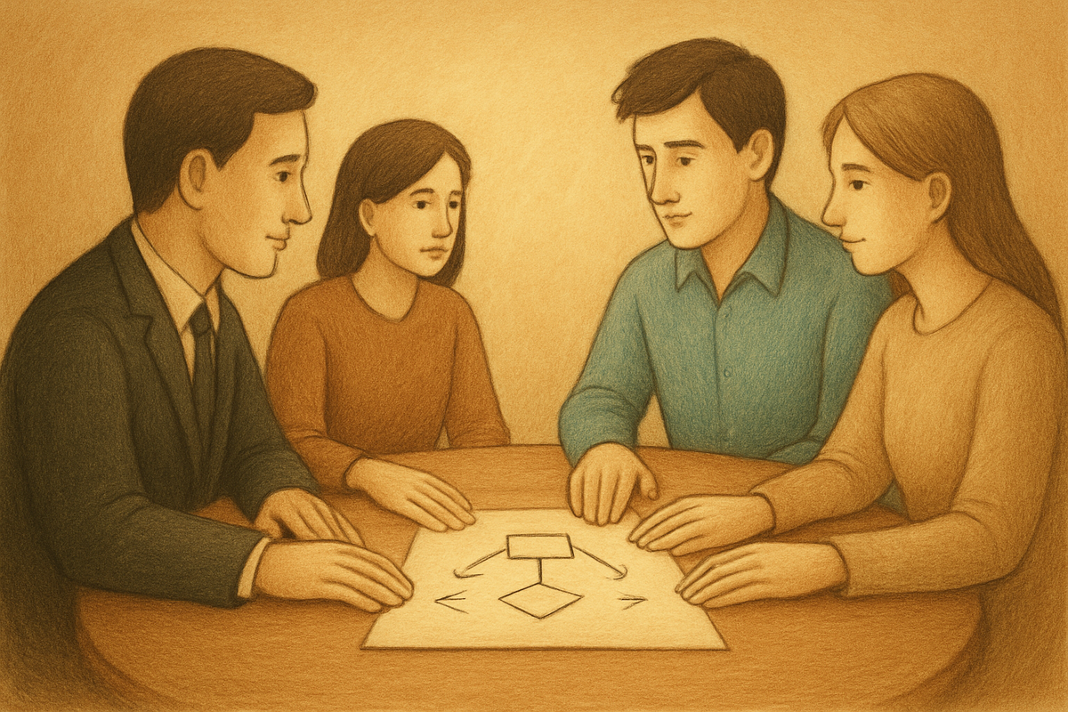 Это про то, что: у команды есть собственная экспертность, рамка и ответственность, у клиента — управление контекстом, целями и ограничениями, а продукт и решение рождаются между. Зрелая команда не ждёт идеального ТЗ. Она помогает клиенту сформировать его через диалог, наблюдения, уточнения и гипотезы. Она не даёт обещания, чтобы «понравиться». Она не идёт в отказ, чтобы «защитить себя». Она остаёт