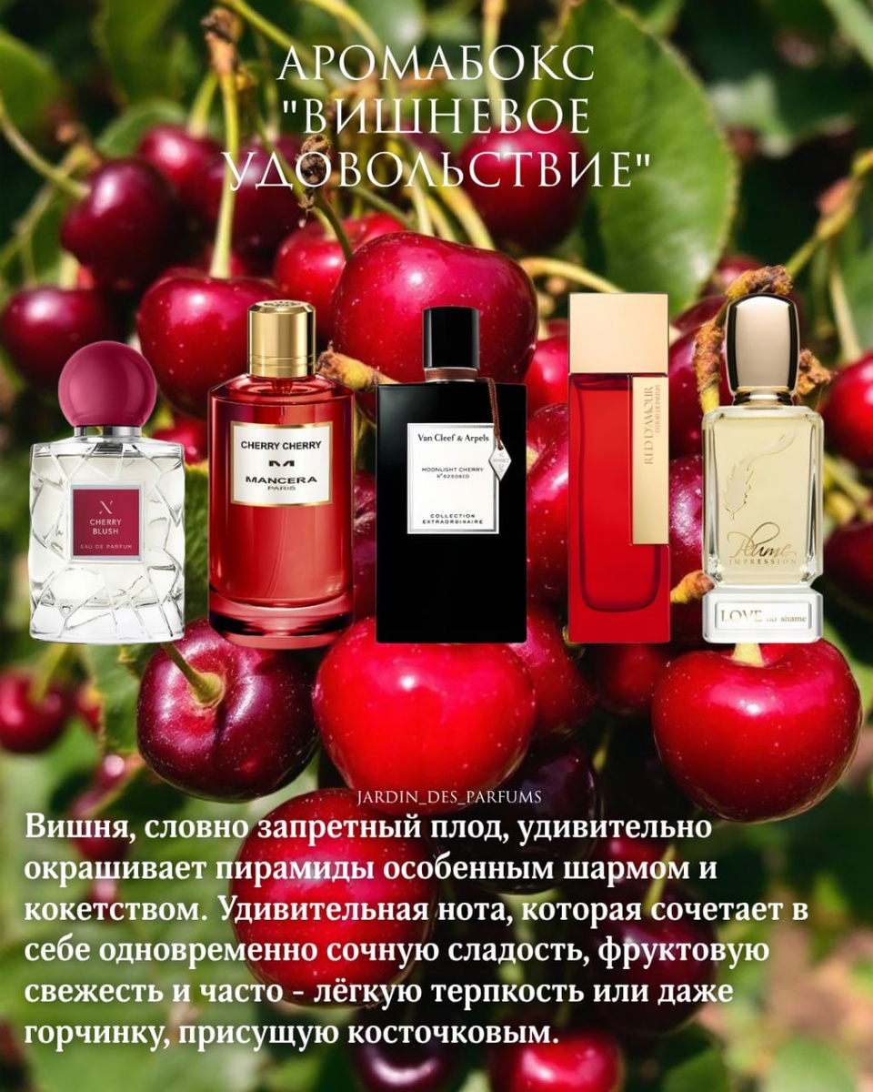 Аромабокс "Вишневое удовольствие" Les Soeurs De Noe Cherry Blush Mancera Cherry Cherry Van Cleef & Arpels Moonlight Cherry LM Parfums Red d'Amour Plume Impression Love No Shame