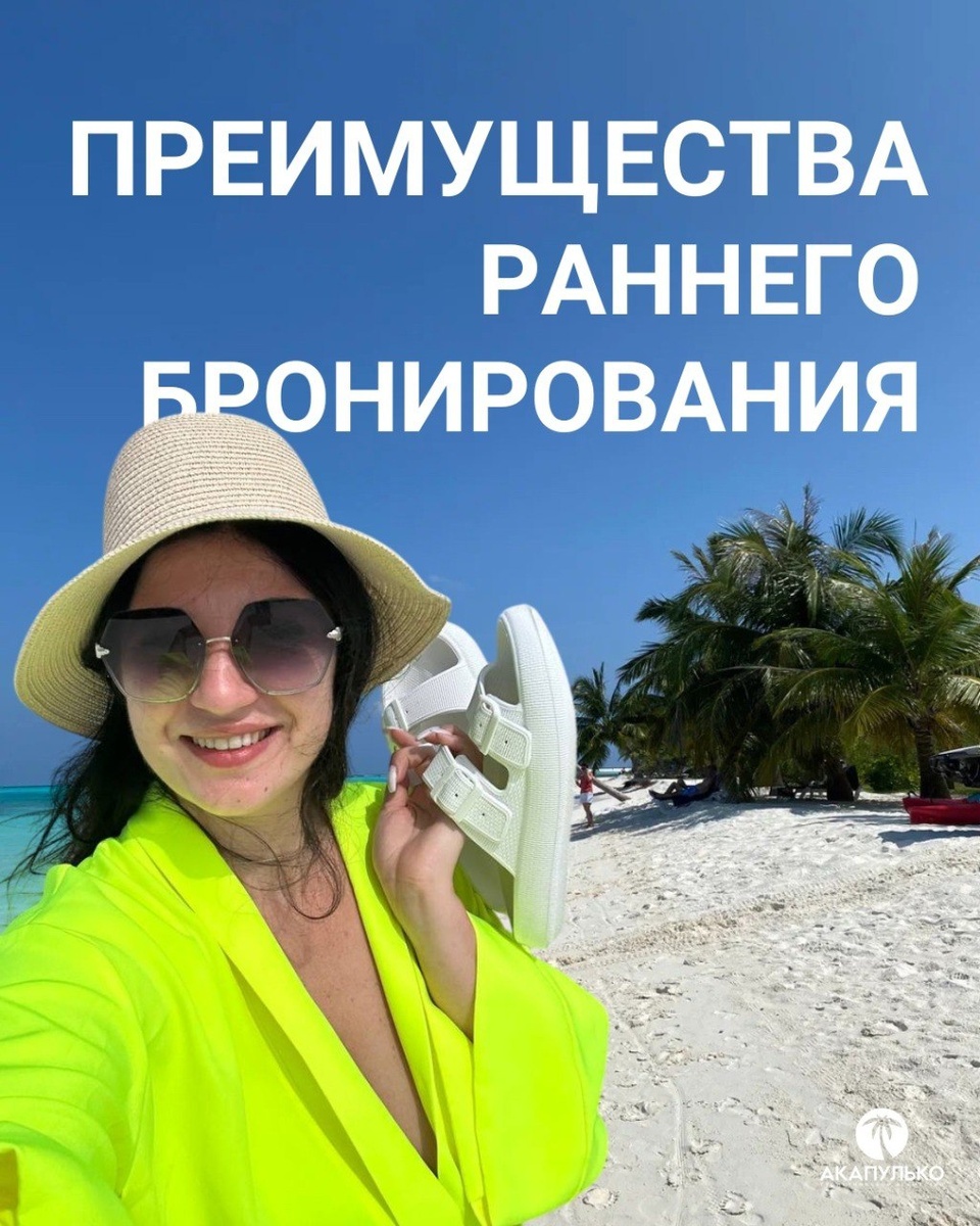 Акция «Раннее бронирование» стартовала❗️ Условно раннее бронирование можно разделить на несколько этапов: • декабрь–январь; • январь–февраль; • февраль–март; • заключительный месяц — март. Официально раннее бронирование заканчивается в марте, потому что во многих направлениях начинается сезон, но и в апреле ещё можно успеть забронировать отличные варианты 😊 Мы советуем не откладывать выбор тура! И воспользоваться прекрасной возможностью уже сейчас))) И представьте: отпуск спланирован идеально, а вы наслаждаетесь жизнью и предвкушаете будущее путешествие 🥰 Чем ближе даты отпуска — тем выше цены. Почему — подробно рассказала вдохновляющий директор нашего турагентства «Акапулько» Ирина. Собрали информацию для вас в карточках выше Забронируем для вас тур? Оставляйте + под этим постом, и наши менеджеры свяжутся с вами ❤ Команда «Акапулько» желает вам незабываемых путешествий!