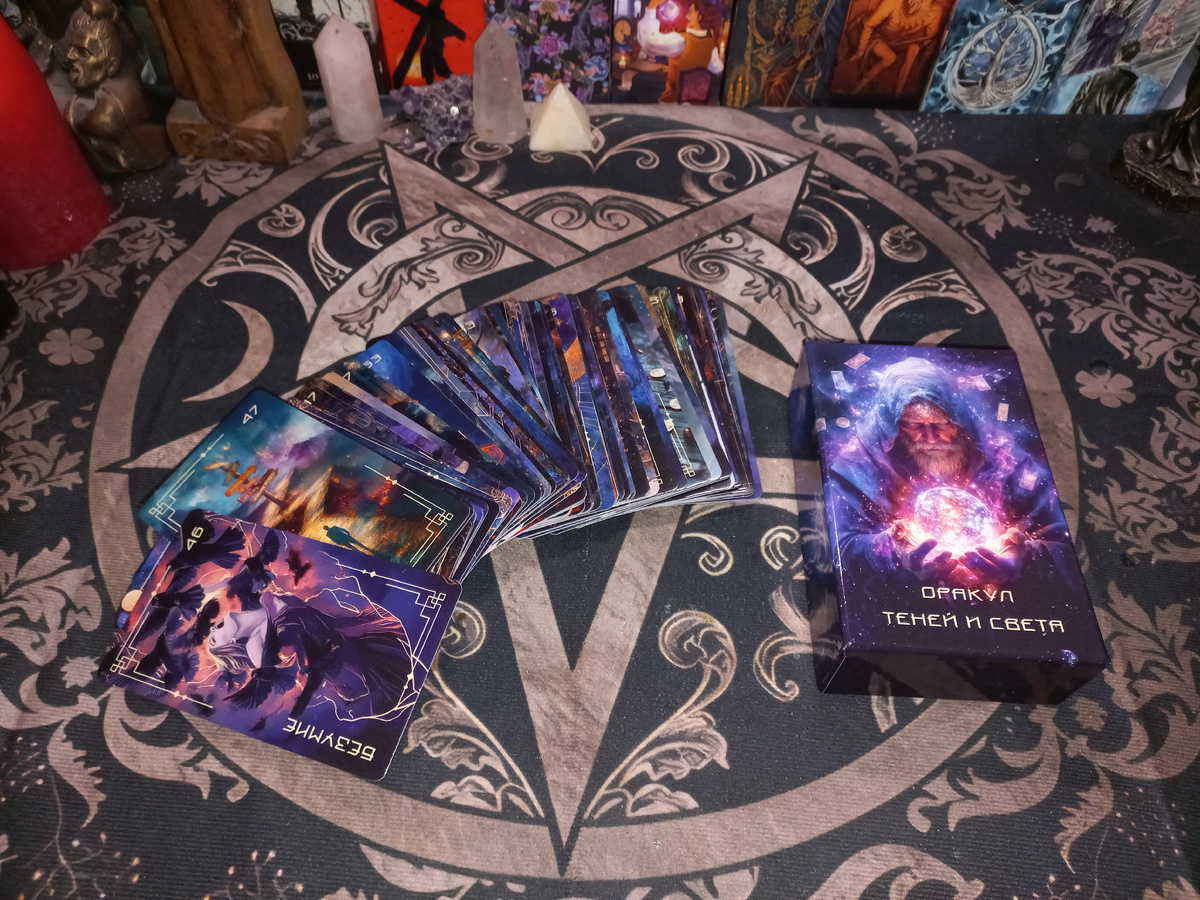 Всем добрый вечер, дорогие друзья! Даю вам ссылку на мой канал в Max. Здесь вы можете увидеть прогноз на каждый день, ритуалы и просто полезную информацию. Благодарю всех, кто смотрит мои видео и читаете статьи 📝. ❤️ Сегодня у нас с вами обзор оракула Теней и света. Статьи с обзорами моих колод я пишу для тех, кто занимается саморазвитием, изучает Таро. 🔮 Оракул Теней и света очень хороший помощник для проведения диагностики, а как известно, диагностика это наше всё!! Этот оракул не создавался на базе Ленорман, это самостоятельный оракул. Показывает негативные программы (например карта переклад, подклад, паутина, оберег и т.д.). И как вы уже поняли из названия, в этом оракуле есть и позитивные и негативные карты. Этот магический инструмент показывает все скрытое от человеческого глаза.