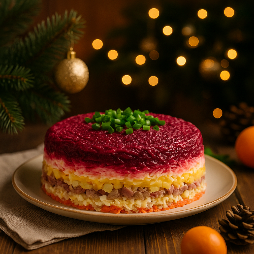 Это не просто блюдо. Это — дух праздника, детские воспоминания и тот самый вкус, который невозможно спутать ни с чем. Слои, майонезная нежность, терпкость свёклы, мягкость картошки — всё это работает как новогодняя музыка: знакомо, тепло и по-домашнему. В нашей семье этот салат прям неотъемлемая часть новогоднего стола, поэтому сегодня расскажем вам, как сделать идеальную «шубу», ту самую, которая пропитывается равномерно и держит форму! Рецепт классической селёдки под шубой (на большую праздничную тарелку) Вам понадобится: сельдь солёная — 1 крупная (или 2 небольшие) картофель — 3–4 шт. морковь — 2 шт. свёкла — 2–3 шт. лук