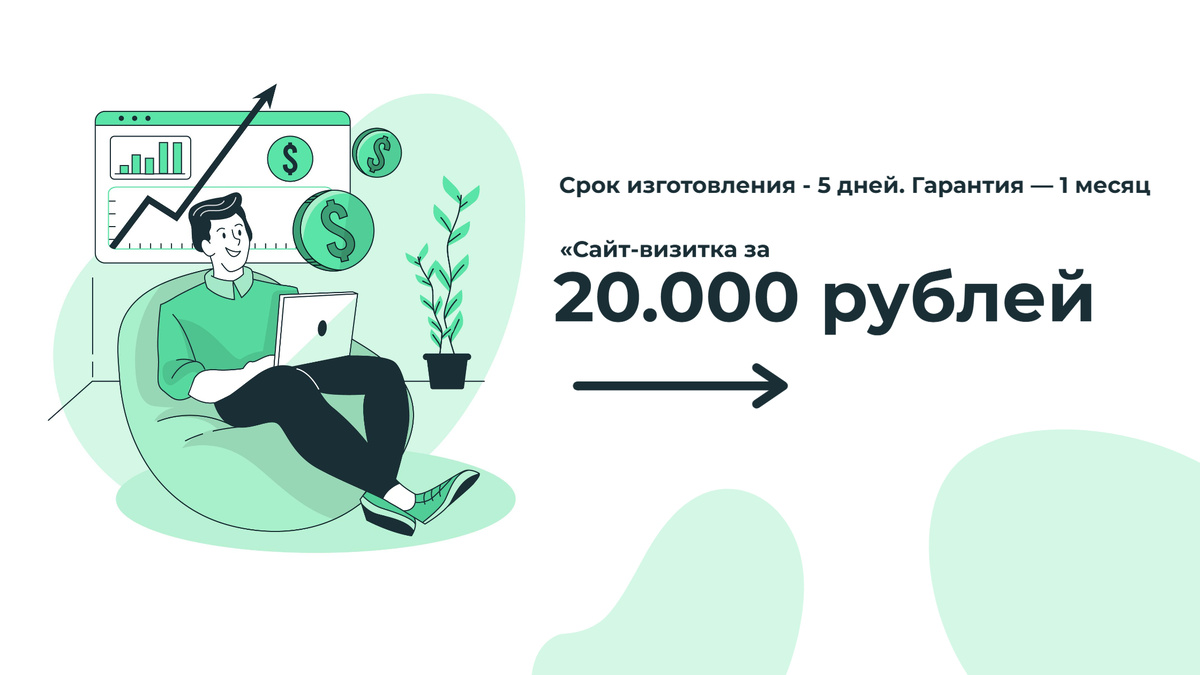 «Сайт-визитка за 20 000 рублей. Срок — 5 дней. Гарантия — 1 месяц».
