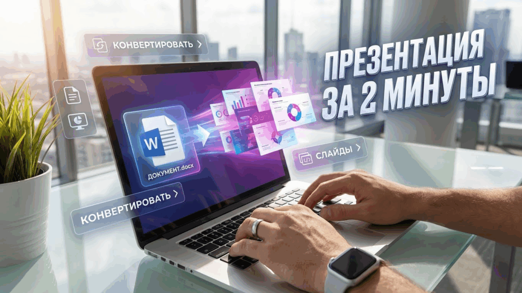 Написал отчет в Word на 15 страниц, а завтра защита — нужны слайды. Переносить все вручную? Это минимум час работы. Покажу, как автоматически превратить документ в презентацию за пару минут.