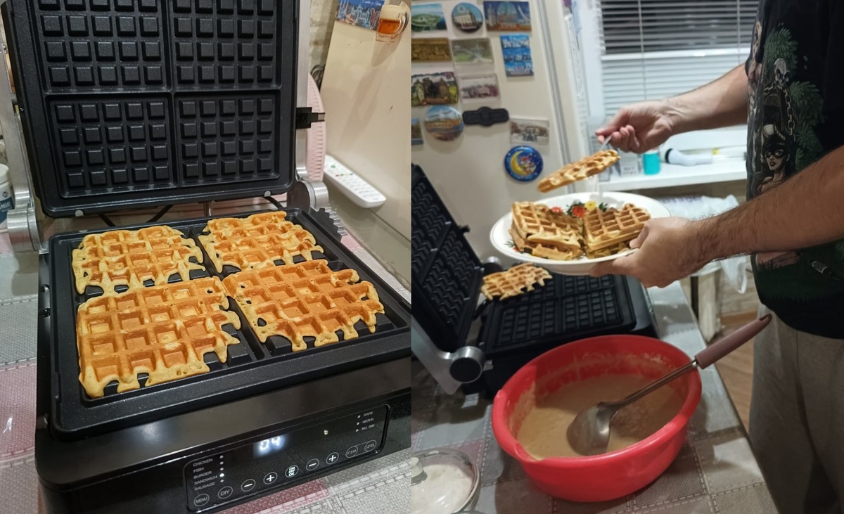 Когда-то я думала, что высшее проявление мужской заботы о доме — это вынести мусор и не забыть купить хлеб. А вот и нет! Мой дорогой муж оазался настоящим Главным Домашним Пекарем. Этот волшебник не просто наполняет дом божественным ароматом свежего хлеба, но и регулярно устраивает диверсии против моей силы воли блинами и оладьями. Держаться за принципы правильного питания приходится буквально вцепившись в край стола! Бывает, смотрю на его золотистые, дымящиеся творения и шепчу себе мантру: «Ты дуб, ты скала, ты просто не голодна…». Срабатывает через раз. Но апогей его кулинарной экспансии наступил не так давно. В нашем кухонном царстве появился новый персонаж — электрогриль со сменными насадками. Теперь у нас четкое разделение труда: мясо — моя вотчина, а вот эти хрустящие, ажурные, сладкие вафли — это целиком и полностью его магия. От запаха кухню тут же наполяют детские возгласы: "А множно мне? А я тоже хочу!" Наши девчонки просекли конъюнктуру рынка моментально. Алгоритм теперь