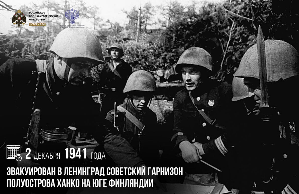 2 декабря 1941 года был эвакуирован в Ленинград советский гарнизон полуострова Ханко на юге Финляндии