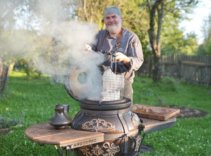 Да, можно. Уже отснято несколько роликов с копчением разной рыбы и птицы при помощи ароматного шпона и при помощи абрикосовых чанок. Ну, а томление у нас представлено очень широко: тут и каши, и первые блюда (щи, борща, рассольники), мясные блюда, такие как бычий хвост, говяжьи щеки, свиные рëбра, свиная рулька, верещака, пепозо, грютта, чанахи, кассуле, конфи, и многие другие. У нас таких блюд отснято более двух десятков. Действительно ли влияет время прогрева тандыра на раскрытие вкуса блюд, или основное значение имеет только момент готовки? Влияет в том смысле, что, например вкус томлëного блюда или копчёного блюда будет значительно отличаться от запечённое, жареного и варёного блюда. Медленная отдача тепла при томлении создаёт вкус, отличный от других типов приготовления. Есть ли смысл "отдыхать" тандыру после прогорания дров перед началом готовки? Нет, это совершенно не нужно, тандыр можно эксплуатировать без остановки. Можно ли говорить о «термическом почернении» или подобном