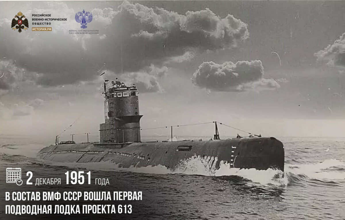 2 декабря 1951 года в состав ВМФ СССР вошла первая подводная лодка проекта 613