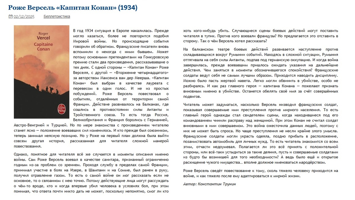 Роже Версель "Капитан Конан" (1934) | Критика