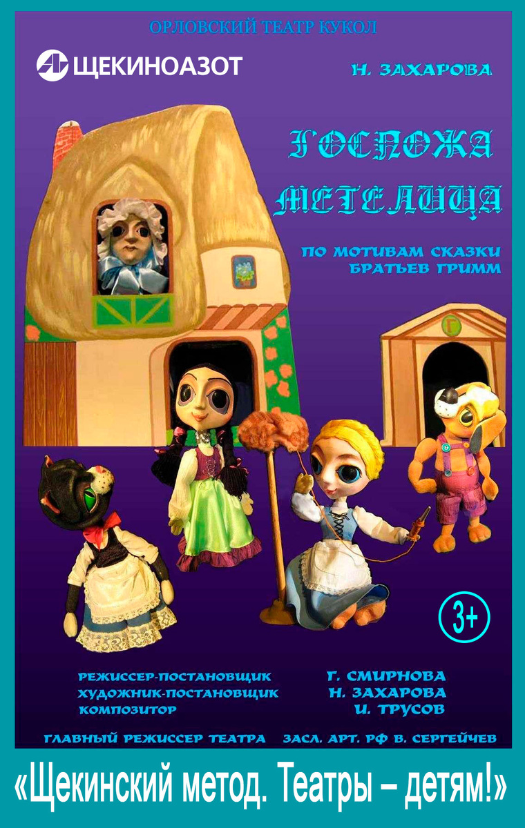 Выразительные куклы, открытый прием, неожиданные декорации приковывают к себе внимание с первых секунд и не дают отвлечься до конца спектакля. Сказка рассказывает о судьбе двух сводных сестер Луизы и Брунгильды и о том, что с ними приключилось в гостях у фрау Метелицы.