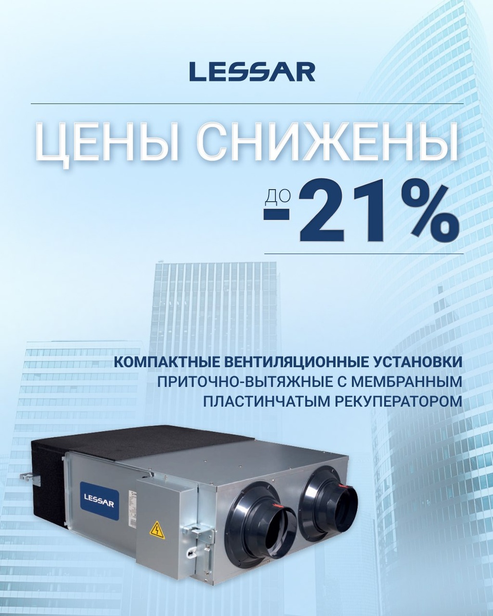 Сияющий свет выгоды... СНИЖЕНИЕ ЦЕН до 21% на компактные вентиляционные установки приточно-вытяжные с мембранным пластинчатым рекуператором LESSAR! Они предназначены для работы в общественных и жилых помещениях. Особенности оборудования: ✅ Есть возможность подключения к установкам канальных электрических нагревателей (заказывается дополнительно), которые можно использовать в качестве как преднагревателя, так и догревателя. ✅ Вентустановки имеют высокий уровень КПД: до 74%. ✅ Корпус вентустановки изготавливается из оцинкованной стали. ✅ Бесшумные вентиляторы с АС-двигателем. ✅ Удобны в обслуживании и легко монтируются. ✅ Установки с полностью интегрированной системой управления. ✅ Функция управления установкой по Wi-Fi через приложение. 🌐 Оформить заказ можно у вашего персонального менеджера!