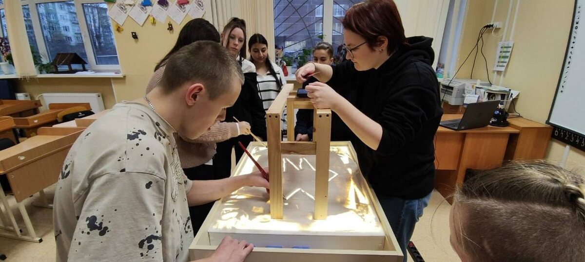 Студентка ГИКИТ провела особенный мастер-класс для ребят с нарушениями опорно-двигательного аппарата ⭐️ 28 ноября студентка 5 курса специальности «Графика» Дарья Подголова побывала в гостях у педагогов и учеников школы №627, чтобы познакомить их с волшебством песочной анимации. Занятие прошло в рамках творческого сотрудничества образовательного учреждения с кафедрой компьютерной графики ГИКИТ при участии доцента Анастасии Вороновой. Дарья помогла детям освоить базовые принципы этой техники, рассказала о материалах и инструментах, а затем вместе с детьми создала анимационный этюд на зимнюю тему. «Ребятам такие занятия помогают развивать мелкую моторику и расширяют их кругозор. Они с интересом погружаются в новый творческий процесс, узнают основы анимации. Подобные мероприятия мягко вовлекают их в социум, дают почувствовать себя частью команды», —делится Дарья. Этот мастер-класс лишь один из этапов долгосрочного сотрудничества нашего вуза и школы. Студенты ГИКИТ уже проводили для реб