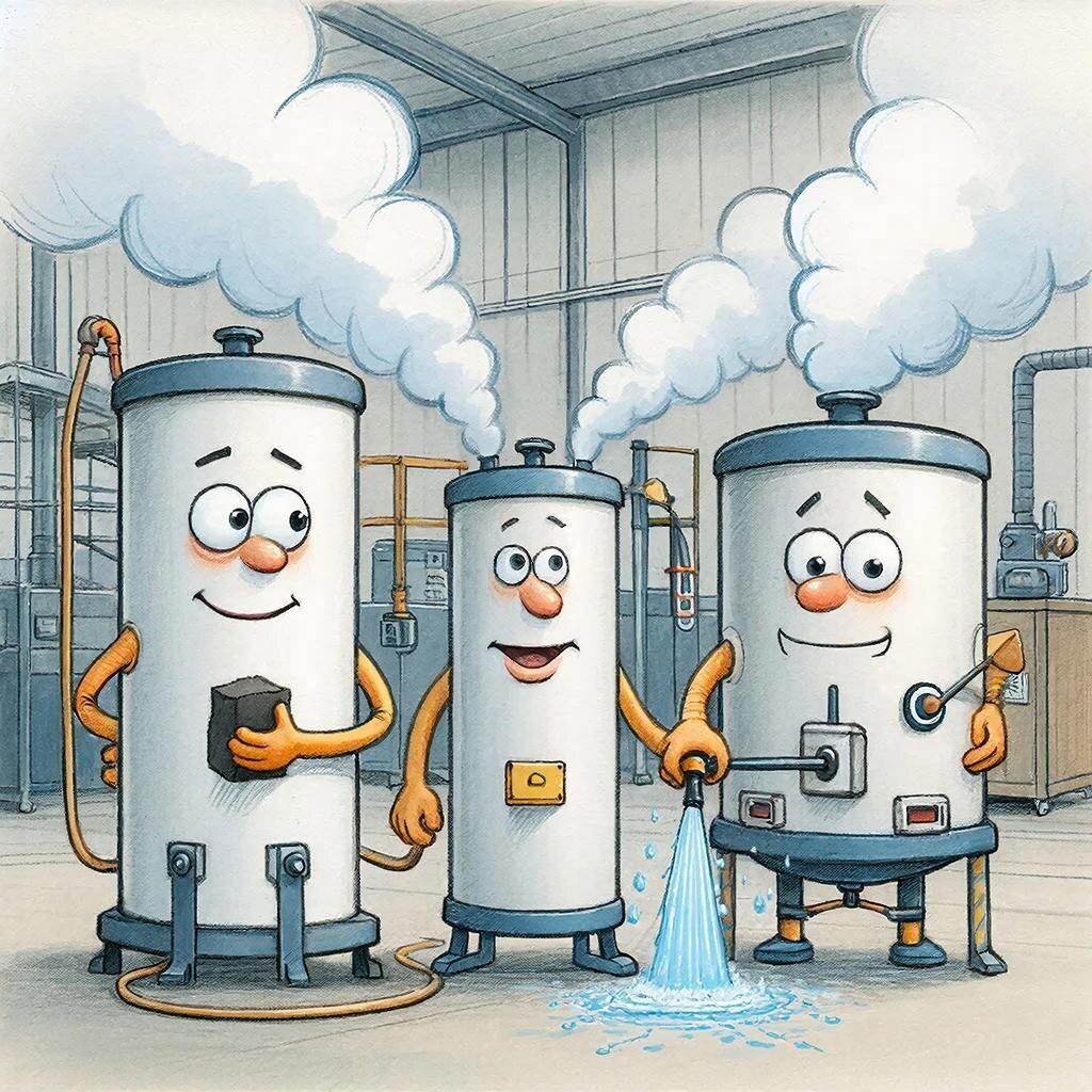 Адсорбер был учёным и эстетом. Высокий, стройный аппарат, заполненный активированным углём, похожим на чёрный песок. Он терпеть не мог грязи и вонючих примесей. Его принцип был точен и изящен: вредные газы, проходя сквозь его слои, прилипали к поверхности угля, как пыль к магниту. Он очищал газы от самых коварных, едва уловимых молекул. «Точность — вежливость королей, — часто говорил он. — Моя работа — ювелирная. Ни капли лишнего запаха».