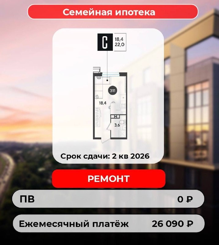 Уникальные предложения по семейной ипотеке: реальные, выгодные, ограниченные по времени! ⠀ Собрала для Вас интересные варианты с минимальными ежемесячными платежами. ⠀ Первоначальный взнос от 0 ₽! ⠀ Такие условия действительно встречаются редко, поэтому важно успеть воспользоваться ими, пока они доступны. ⠀ 🏡 В чем плюсы предложений: - Современные планировки - Удобные сроки сдачи (от 2026 до 2028 года) - Платёж от 26 090 ₽ ⠀ Мы работаем не только по Большому Сочи, но также в Краснодаре, Крыму и многих других городах. Подберём идеальную квартиру под вашу семью и ваш бюджет. ⠀ ✅Пишите мне в личные сообщения, чтобы получить подробности @julia_usachevagrc 📲 Подписывайтесь на мой канал в MAX