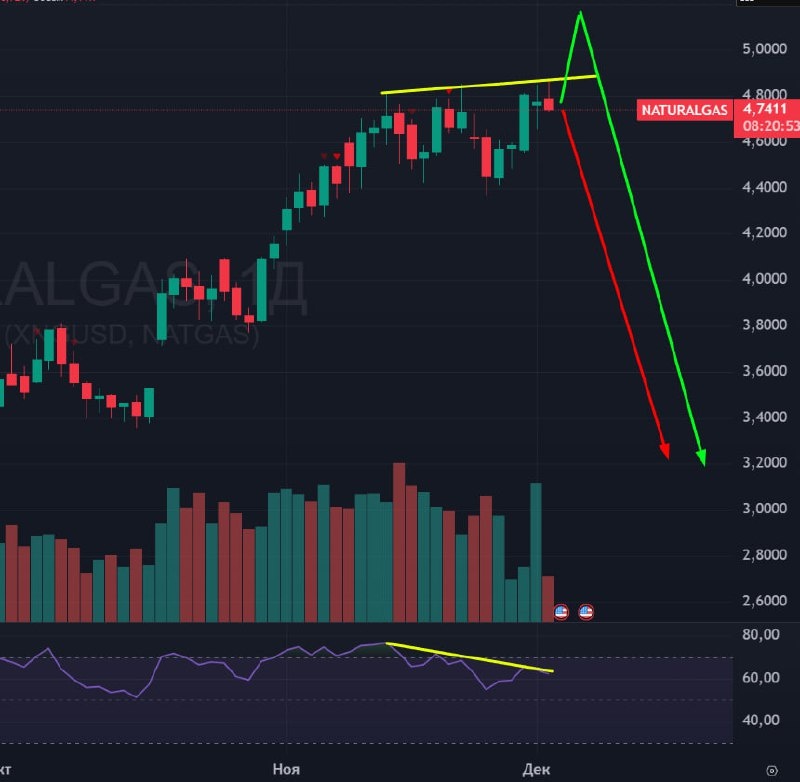 ⛽️ ГАЗ 🟢 Дневка сегодня получила обновление локальных хаев и сразу же рисует разворотную свечку + медвежье поглощение. Я бы сам с радостью шортил газ при таком сетапе, но, зная газ, он любит заканчивать восходящие тренды с помощью выносной манипуляции, чтобы никто из шортистов не уцелел. Поэтому, я пока скептически отношусь к началу разворота газа, но понимаю, что он уже где-то рядом. 🚗 Стратегически жду газ вниз, но ожидаю манипуляций с выносом вверх для уничтожения последних шортистов. #Газ #NG #американскийгаз #Фьючерсгаза #naturalgas #bogdanoffinvest