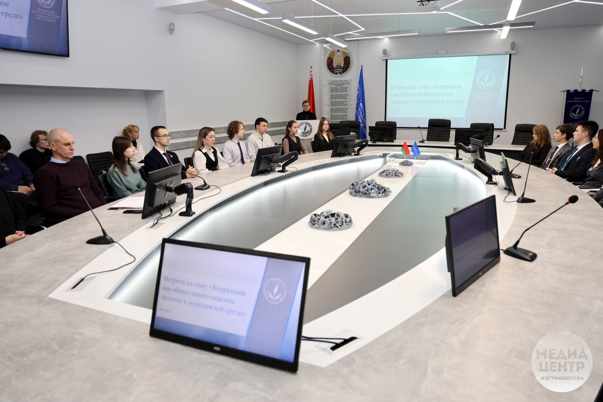 🗣2-го декабря в конференц-зале ВГУ имени П.М. Машерова состоялась встреча студентов со старшим преподавателем кафедры уголовного права и уголовного процесса юридического факультета Титковой Ириной Николаевной на тему «Коррупция как общественно опасное явление в молодежной среде» Спикером были освещены вопросы о стратегических направлениях правоохранительной и иной деятельности, как общих механизмах профилактики и борьбы с коррупцией, устранении ее причин и условий, формировании ценностных основ деятельности общества и государства в области борьбы и предупреждении противоправных действий, о мерах ответственности за коррупционные и создающие условия для коррупции правонарушения. #новости