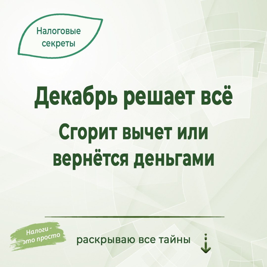 🔥 Один неловкий платёж — и вычет сгорел. Навсегда. 👉 До конца года остался месяц. И именно в декабре решается, вернёте вы свои деньги от государства или нет. 📌 Главное правило: Вычеты по социальным расходам (лечение, обучение, спорт, ДМС) считаются по году оплаты, а не по дате самого приёма или обучения. Примеры: 🔵 Купили абонемент в спортзал в декабре 2025 на весь 2026 год? Вычет идёт за 2025. 🔵 Оплатили второй семестр вуза в декабре 2025, хотя учёба начнётся в 2026? Вычет - за 2025. 👉 Лимит: 150 000 ₽ в год на человека. Вернуть можно максимум 19 500 ₽ (это 13% от лимита). 💁♀️ Примеры, как можно неожиданно потерять деньги: ✔️ Вы уже заплатили за лечение 160 000 ₽ в этом году. И сейчас хотите внести ещё 20 000 ₽ за анализы. 🫸 Стоп. Часть суммы, которая превышает лимит, "сгорит". Вычет не вернётся. Может, есть возможность подождать до января? ✔️ А вот когда стоит поторопиться: Если в 2026 году вас ждут большие траты на лечение или обучение, то оплатите сейчас базовые рас