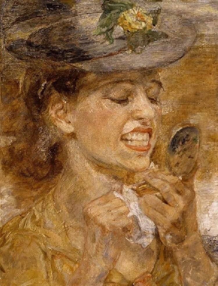 На самом деле "Поправляя макияж ", конечно, но накал страстей не тот, не тот.