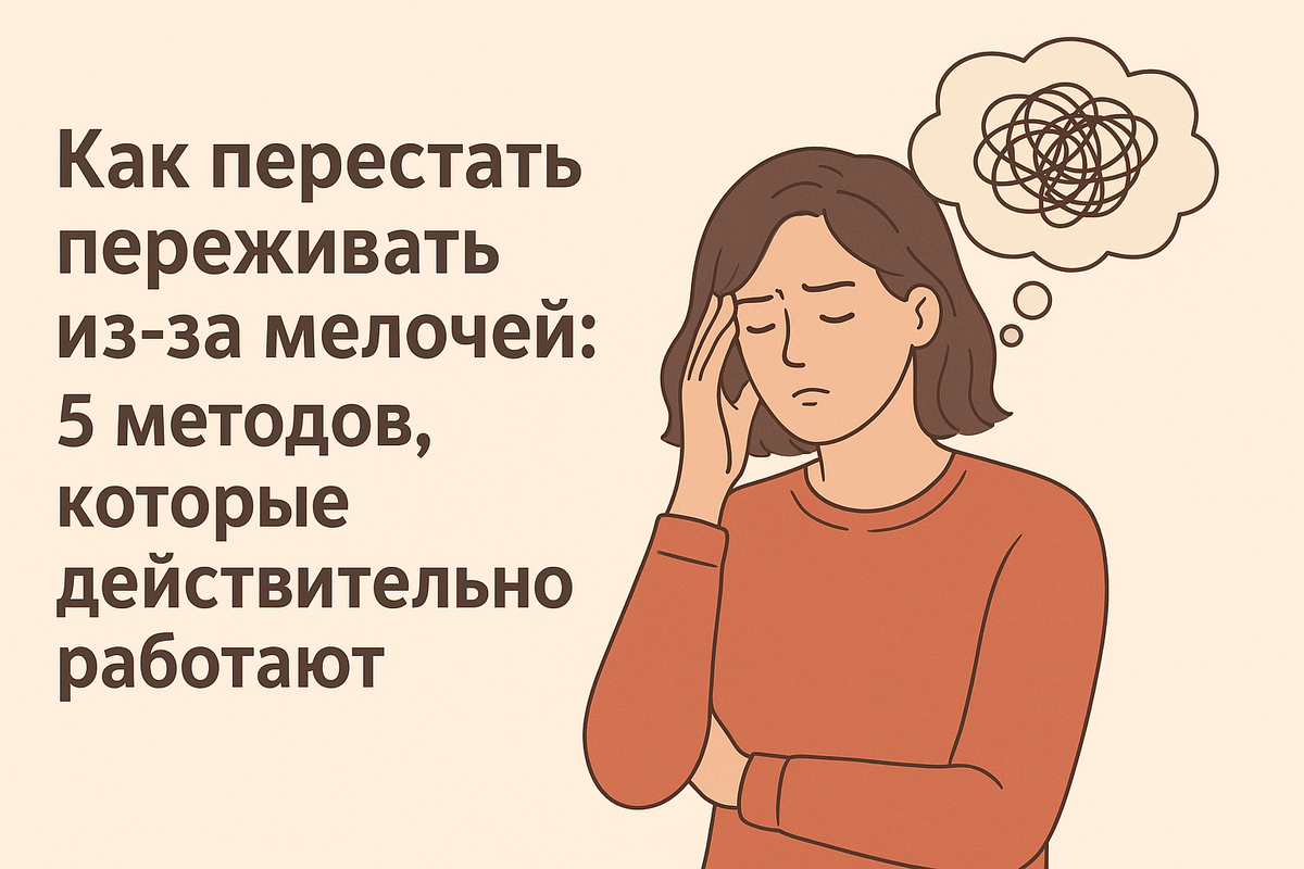 4️⃣ опыт прошлого, когда мелочь действительно становилась проблемой Хорошая новость: это можно изменить. 🔹 Метод 1. “Письмо тревог” — работает за 3 минуты Возьми лист и выпиши всё, что беспокоит. На бумаге тревога становится конкретной. Мозг перестаёт “крутить” мысль бесконечно — цикл локально закрывается. 🔹 Метод 2. Техника 5–4–3–2–1 Когда накатывает тревога: назови 5 предметов вокруг 4 звука 3 тактильных ощущения 2 запаха 1 вкус Метод возвращает мозг “в реальность” и снимает накрутку. 🔹 Метод 3. “Что зависит от меня?” Раздели проблему на две части: 1. то, что ты можешь контролировать