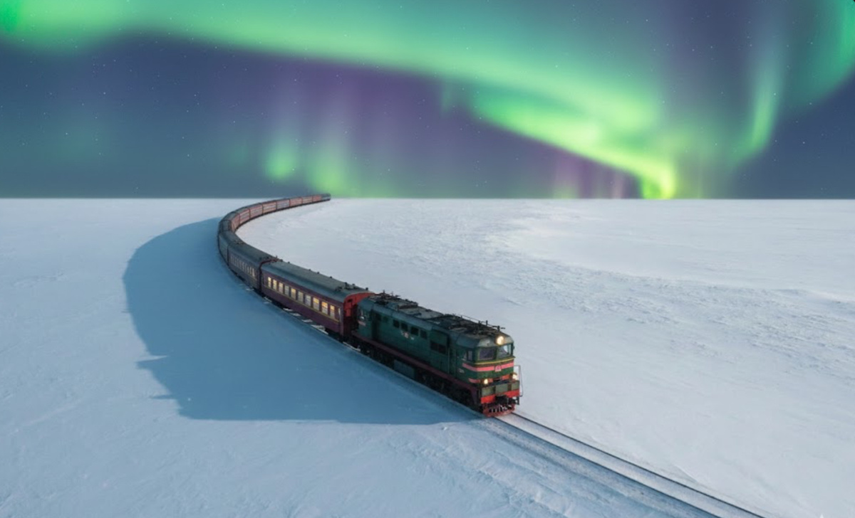За путями — тундра, море и северные сияния.
