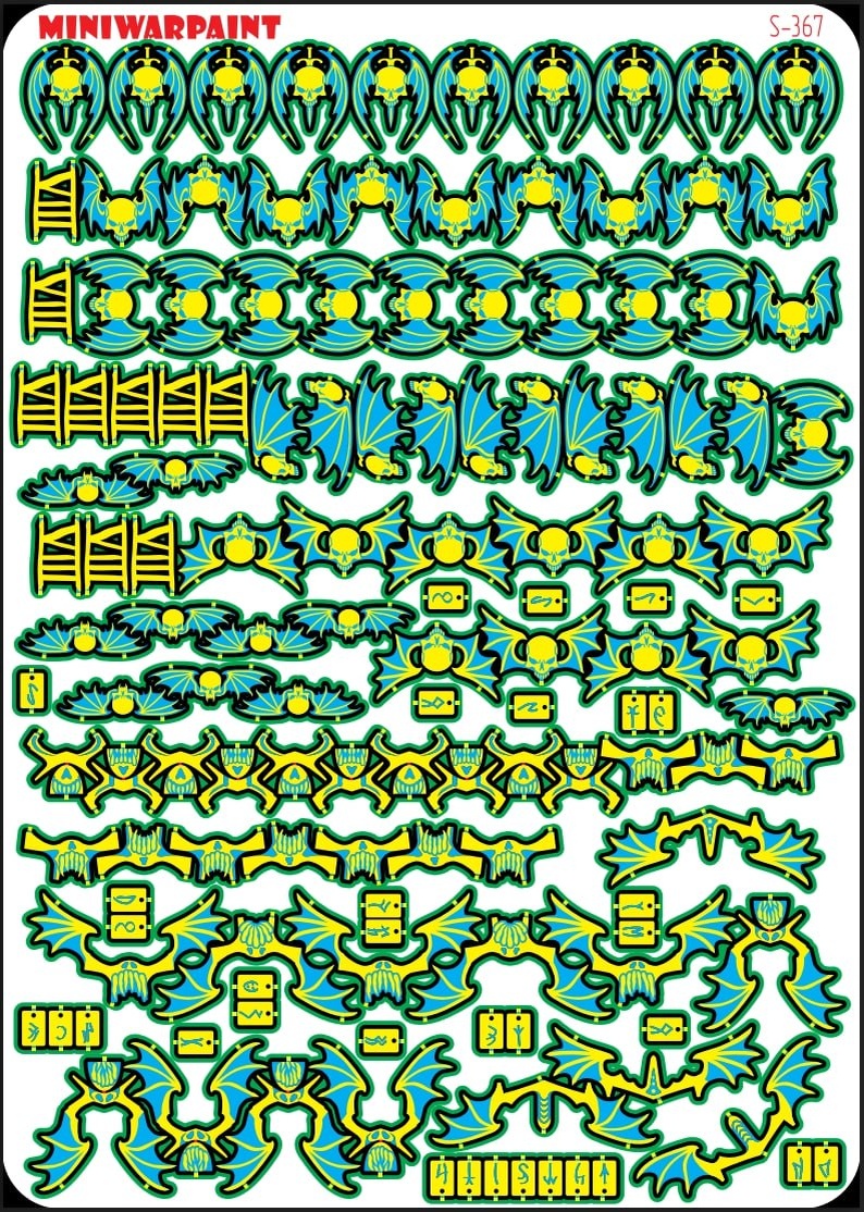 MiniWarPaint готовит новые наборы фототравления для миниатюр по WH40K. Первая (желто-голубая) картинка это макет фототравления, на котором будут объемные эмблемы на наплечники, нагрудники и всякие намордники. Вторая и третья картинки это декали. Декали будут печататься по технологии шелкографии и ничего вырезать на листе не нужно будет. Кто имел дело с нашими наборами боеприпасов могил оценить уже и удобство в работе и качество печати (Ростовская компания Бегемот жеж, кто кроме них еще так может) Но как всегда хочется сделать идеальные наборы, посему мы призываем игроков заинтересованных в данных наборах к обсуждению ряда вопросов: 1. Стоит ли размещать на втором листе декалей вот это всё тактическое белое, которое и так есть в стоковых декалях и при необходимости выменивается у друзей на пиво? Или скинуть ее нафиг и побольше молний туда насыпать? 2. Количества символов на декалях достаточно? лишнего ничего нет? 3.Что-то добавить нужно?