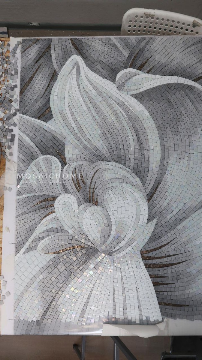 Панно "Орхидеи" от студии MosaicHome в светлой монохромной гамме