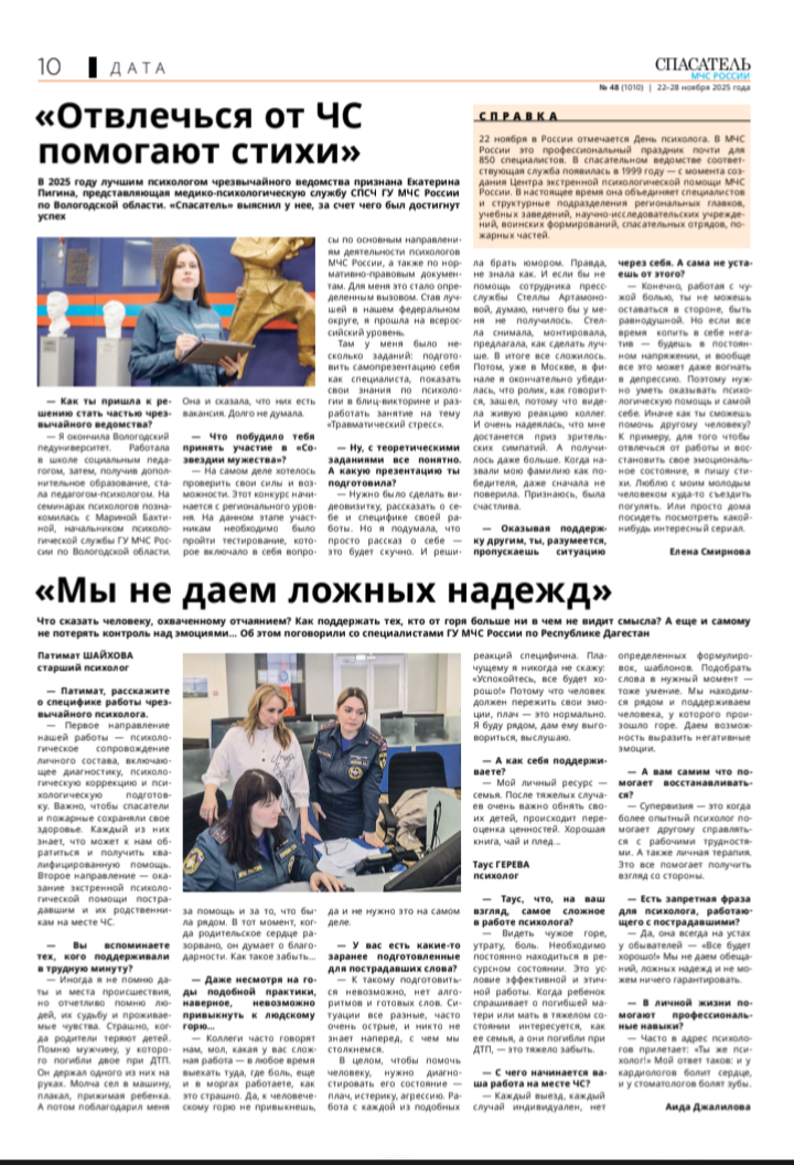 ✅ Интервью с психологами Главного управления МЧС России по Республике Дагестан опубликовано в газете «Спасатель МЧС России»