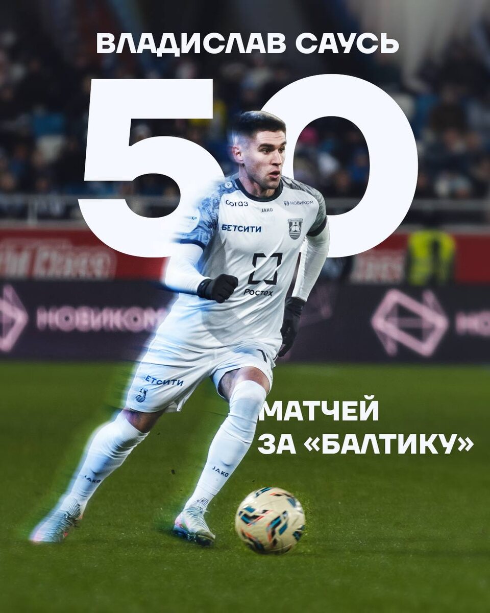 50 МАТЧЕЙ САУСЯ 💙 Матч со «Спартаком» стал для Влада юбилейным — 50-я игра в бело-синей футболке! Влад, желаем новых побед и достижений вместе с Балтийцами! 💪