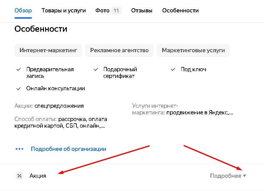 Рано радовалась называется ))) Выше писала, что в Яндекс Картах появилась возможность разместить Акцию без рекламного продвижения...И вот результат ) Серая плашка "%Акция" находится в самом низу карточки! Чтобы ознакомиться с акцией, нужно ее раскрыть. Из опыта могу сказать, что до низа карточки долистывают не более 2-3% посетителей. Возник вопрос: нужна ли такая "щедрость" от Яндекса? 🤨 #карты