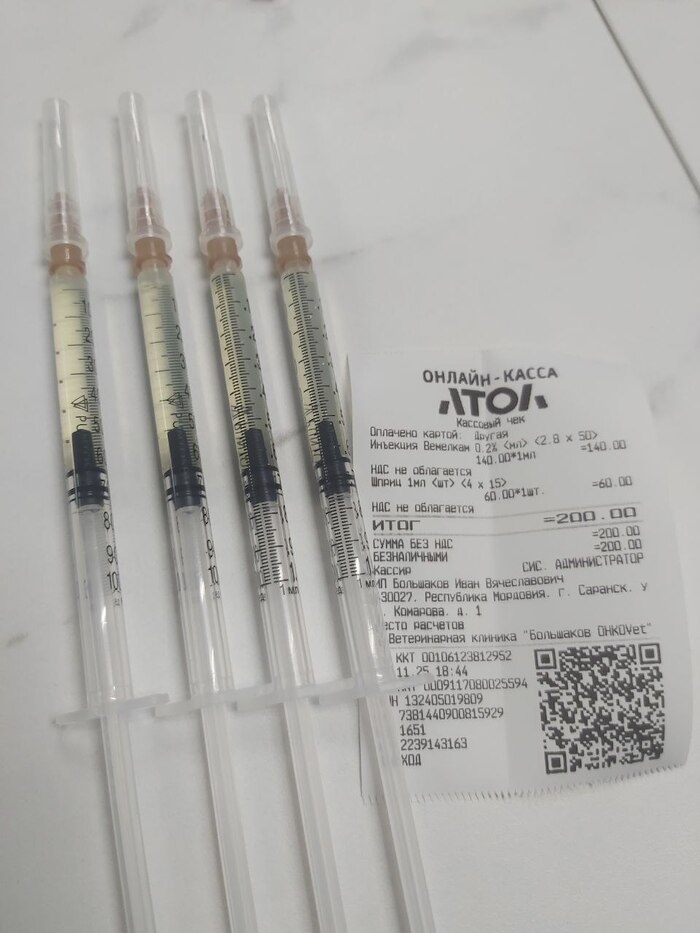 Вчера не получилось составить отчёт, поэтому будет за два дня. 30.11.2025 + 01.12.2025 За два дня пришло три перевода: 1000, 300, 250. Итого 1550 руб. Всего собрано с 28 ноября по 1 декабря целых 99.400 руб. Расходы за эти два дня: Обезболивающее для кота, которому удалили зуб 200 руб. 2. Дедушке Виктору за помощь с приютом 600 руб. (за два дня) 3. Заказ на 20 вакцин и на глистогонку Селафорт (как приедут, попадут в фотоотчёт) 13.673. Итого за два дня израсходовано: 14.473 Плюс расходы 29 ноября: 19.212, 21 Итого все расходы: 33.685, 21. Пока что приют в плюсе на 65.717 рублей (копейки откинем, ладно?) Также прибыла куча подарков от ребят и девчат с Пикабу, Ирина уже несколько раз ходила забирать, а толком распаковать не успевает.Я на седьмом небе от счастья! Сейчас присяду, отдохну часик и начну распаковывать, рассказывать.". Пока что вот так, подробнее будет попозже. В общем, я тоже жду фото и видео распаковки подарков и их тестирования счастливыми хвостатыми.))) Пост автора SadPet.
