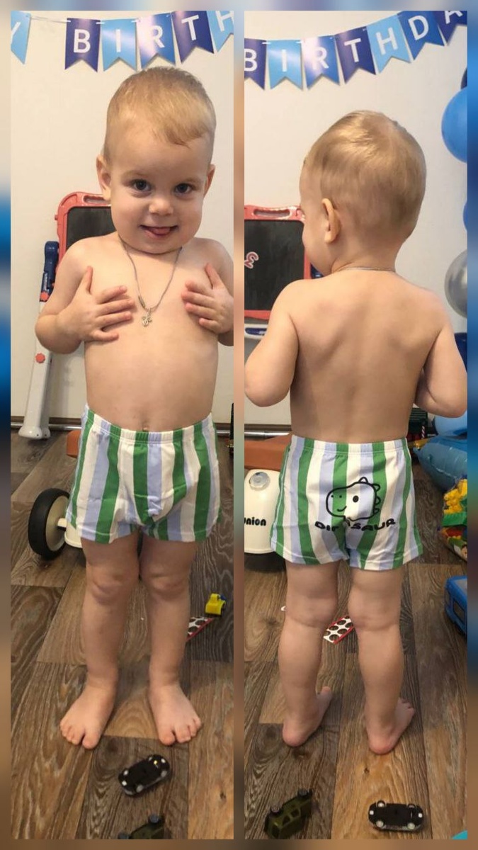 Русланчик ( мой внук) в бассейне,а на фото примерка новых трусиков ...большеваты чуть🥰