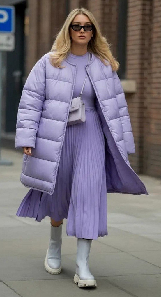 Зимой юбка как бы не самая актуальная деталь женского гардероба. Но разве не бывало у вас, когда брюки, которые носить изо дня в день, надоели так, что сил нет. Вот тут-то и достаем юбку. Но юбка с пуховиком? Не сомневайтесь! Зимний образ с пуховиком и юбкой — прекрасный способ оставаться женственной, стильной и при этом тепло одетой. Разберёмся, как соединить эти, казалось бы, разные вещи гармонично. Какой пуховик будет хорош с юбкой Ключ к успешному выбору пуховика — в деталях. ✅ Короткий пуховик (до линии бёдер) — идеальный партнёр для юбок любой длины. Он не перегружает фигуру, оставляет пространство для демонстрации юбки и визуально вытягивает ноги. ✅ Приталенный силуэт или модель с поясом — ваш лучший друг. Пояс, даже просто завязанный на бант, сразу создаёт талию, добавляет формы и изящества. ✅ По цвету - лучше выбрать спокойную палитру — тёмно-синий, бордовый, оливковый, тёмно-зелёный, классический чёрный, бежевый, серый. Эти цвета легко сочетать, и выглядят они дорого