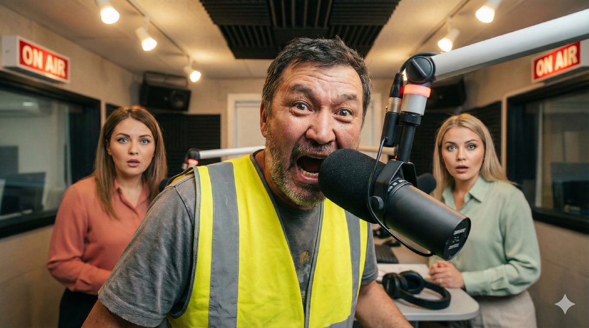 Нурлан выбрал радио. Не площадь, не интернет, не петицию. Радио. Прямой эфир. Микрофон.