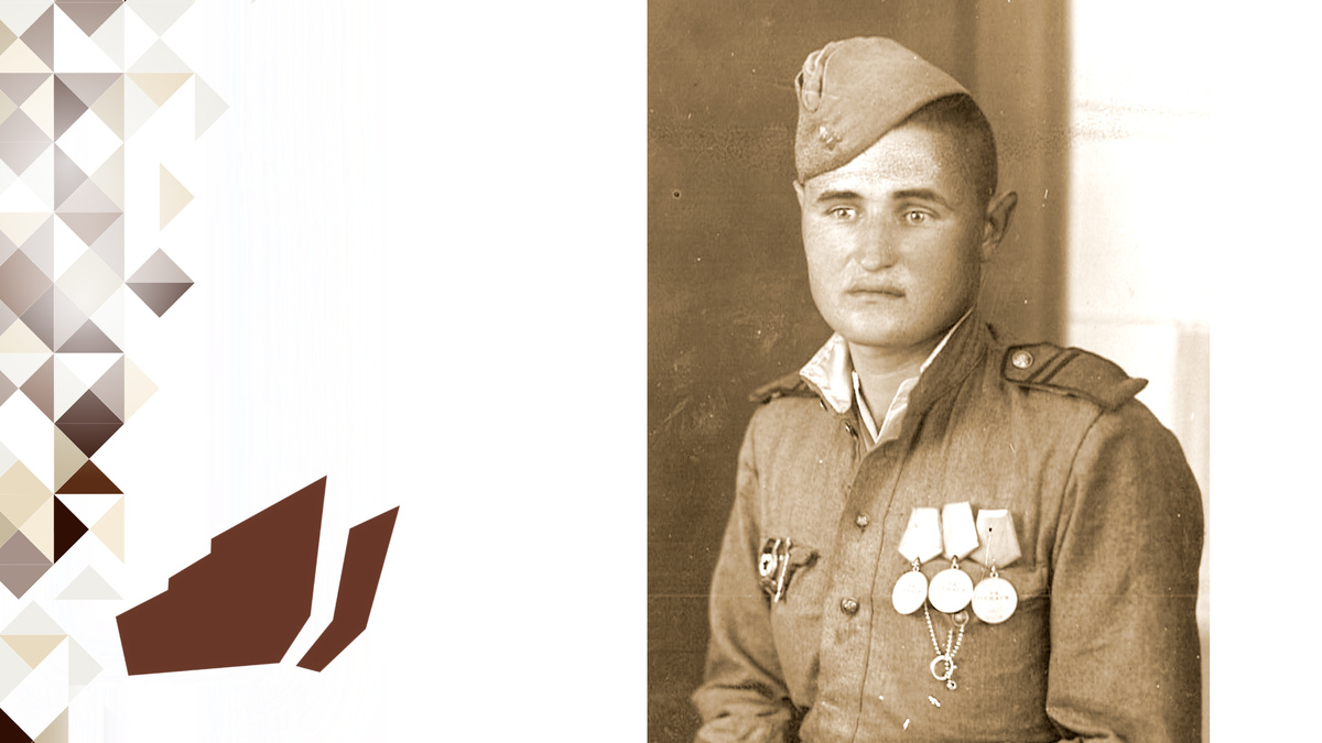 Судя по подписи на обороте фотографии, она была сделана 2 мая 1945 в австрийском городе Трайсмауэр. И как следует из этой же надписи, фотография была адресована родственникам бойца. На гимнастёрке мы видим целых три медали «За отвагу». Эта медаль вручалась за личное мужество и отвагу в боях. Она являлась старшей среди медалей СССР и считалась весьма почётной у фронтовиков. Неоднократное награждение этой медалью было явлением не таким уж редким. Например, сержант медицинской службы Грецов Семён Васильевич был награждён шестью медалями «За отвагу».
