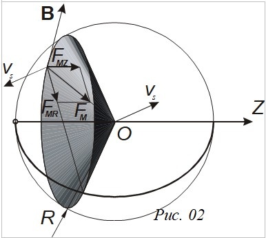 Сила Fm (Рис.02), связанная с продольным движением электрона, придаёт ему угловое ускорение без затрат и выработки энергии. Вся энергия остаётся внутри системы, излучения нет.
