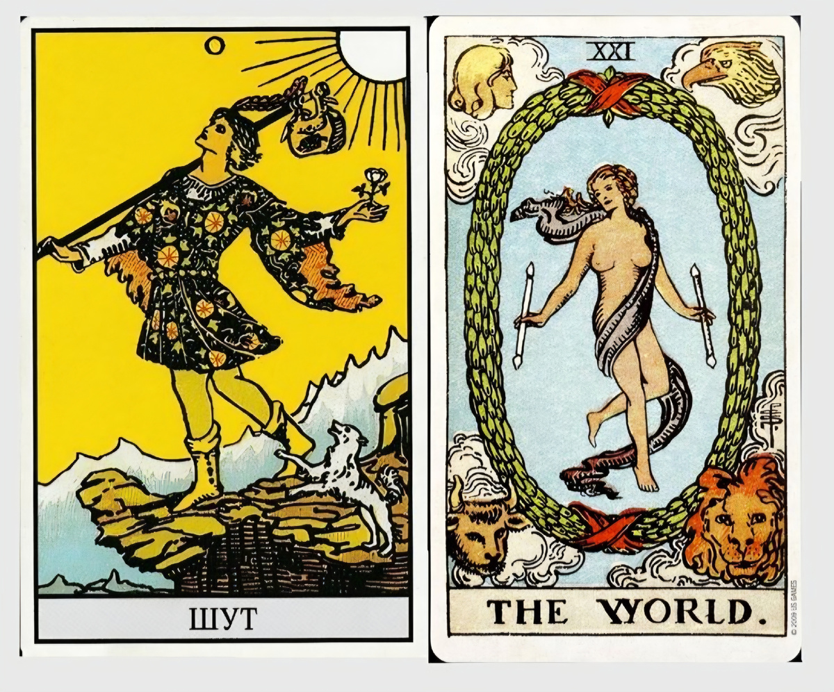 Невинный старт (Шут) с самого первого шага находится в потоке мировой гармонии, успешного завершения циклов и ощущения принадлежности к целому (Мир). Это не прыжок в неизвестность, а шаг в уже готовый, совершенный мир, где вам сразу же находится свое идеальное место.