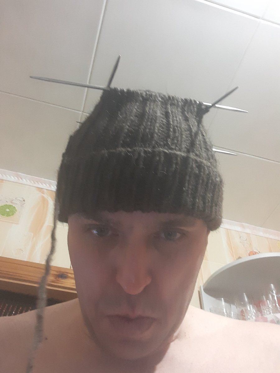 Моя мама, любит вязать шапки с отворотом и без. Очередная примерка, выглядит так. Сережа, давай, мерить, запускать или нет. С 10 шапок, у меня наберется, все почти вязала, мама. Зимние и весенне-осенние виды. Что сделано, своими руками, бесценно. Заходите на мой канал.