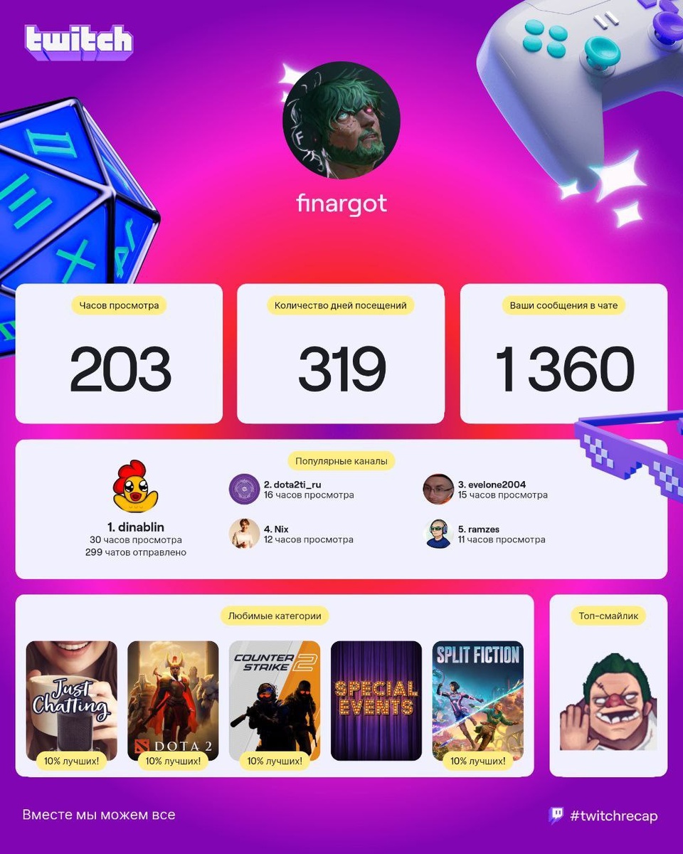 Мои скромные итоги. Стримерские кидать нет смысла, я уже не стримлю почти. Делитесь вашими