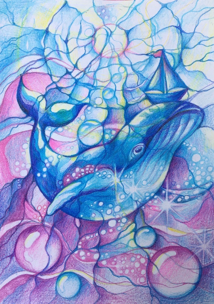 Ольга Демьянова: "Рисовала Курс НейроАрт с инструктором Людмилой Коструб. Алгоритм «Ангел-хранитель». В рисунке сразу увидела себя маленьким корабликом, пустившимся в свободное, интересное плавание под названием ЖИЗНЬ. А большой и добрый кит, как ангел-хранитель, всегда рядом; оберегает, направляет к свету, не давая сбиться с пути." #нейрографика #нейроарт #нейрографикаобучение #психология